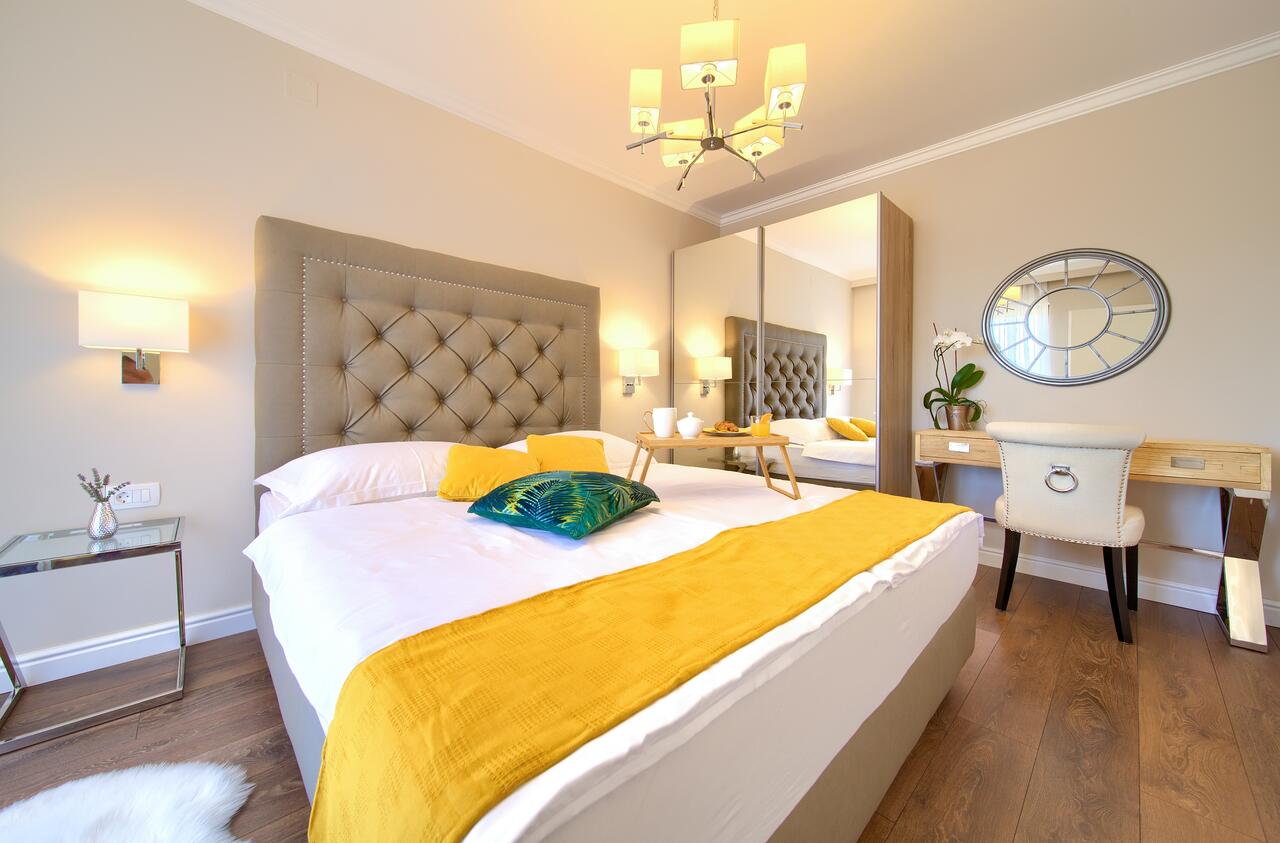 The apartment also includes a fully equipped kitchen, a modern bathroom, air conditioning, and free WiFi, ensuring everything you need for a convenient and enjoyable stay.